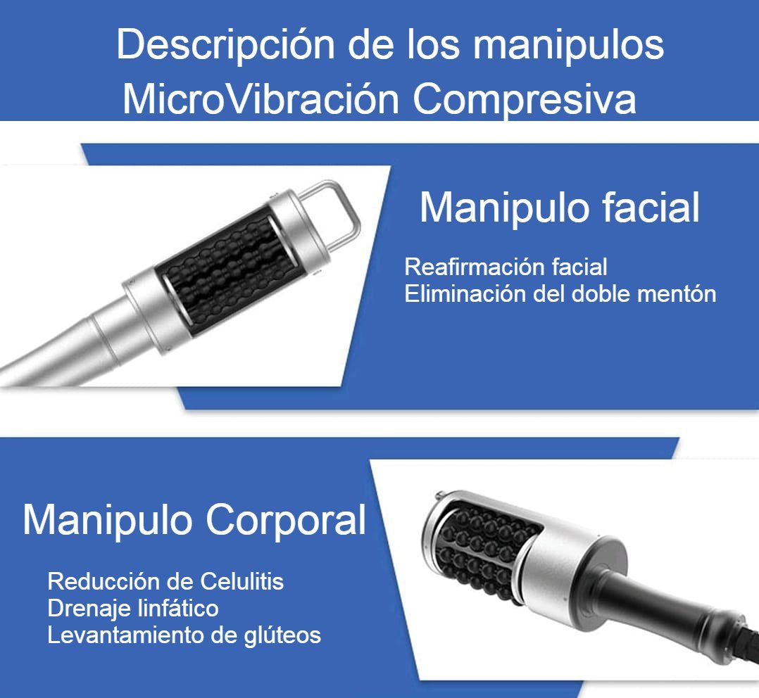 - La MicroVibración Compresiva este es un tratamiento de última generación que permite trabajar todo el cuerpo, de los pies al cuello, de la frente al abdomen y de los glúteos a los brazos.