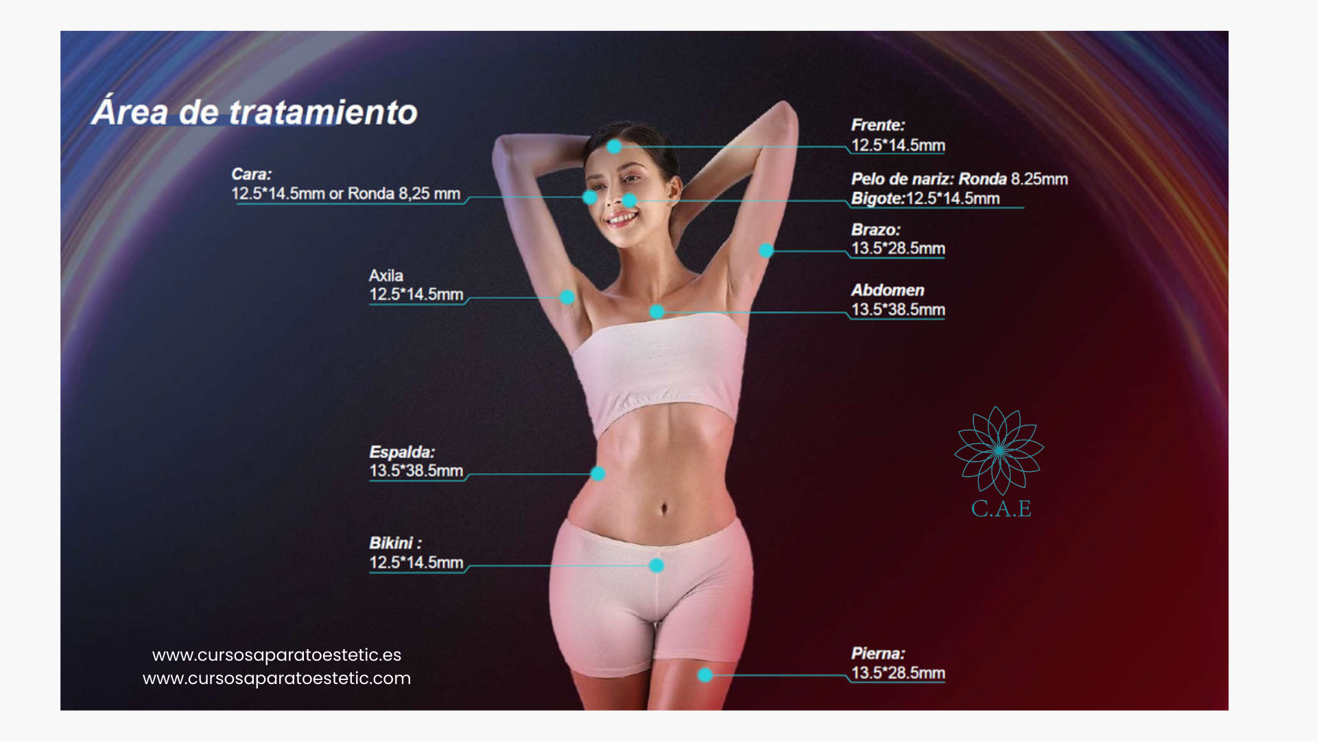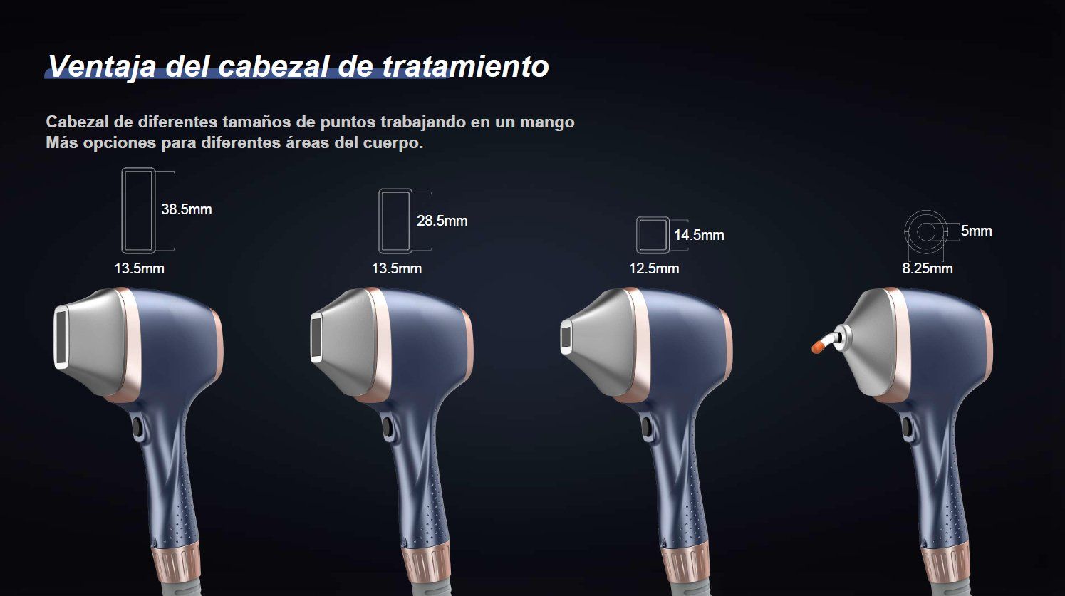 b) El cabezal de tratamiento posee 4 spots para tratamiento en áreas pequeñas y áreas grandes, se ahorra mucho más tiempo