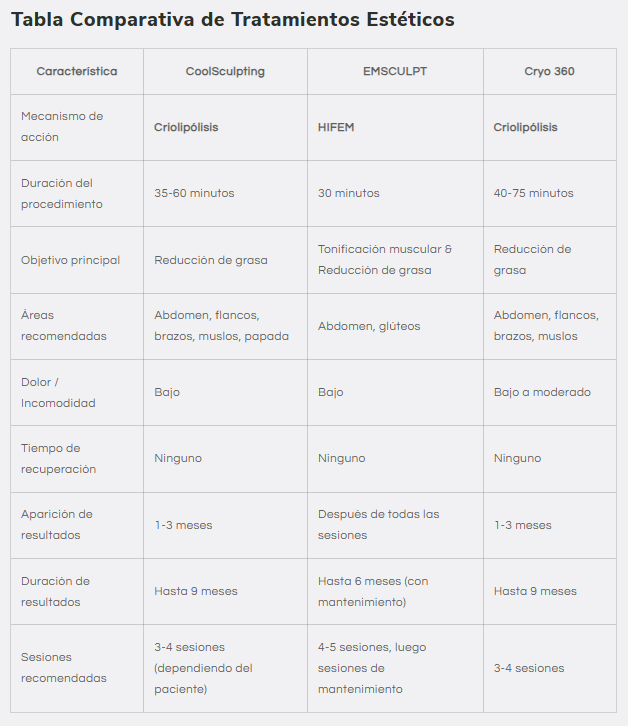 Comparativa de Tratamientos Reductores (Cryolipolisis, HIFEM y Cryolipolisis 360º)