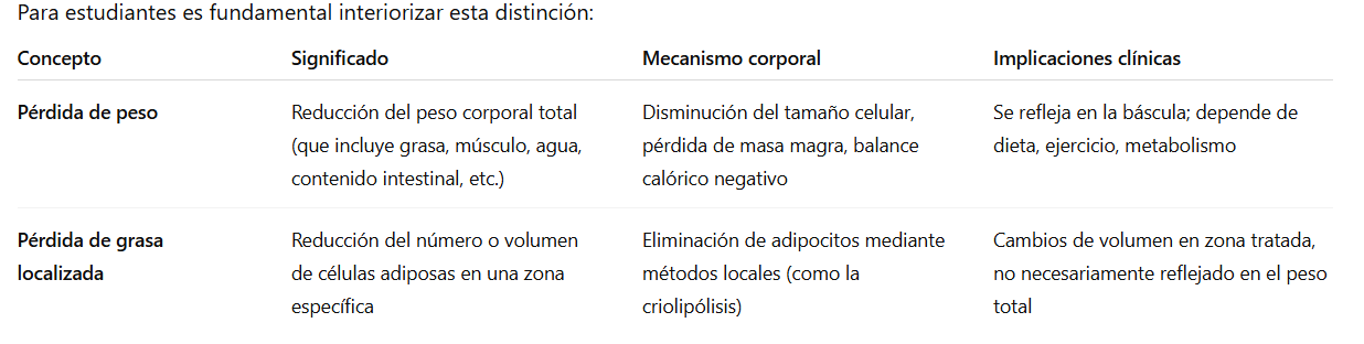 Criolipolisis. Diferencia clave entre la pérdida de peso vs pérdida de grasa