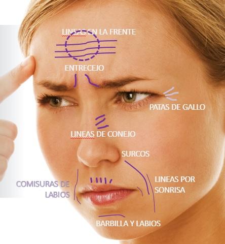 Están clasificadas como arrugas de tipo 3, las cuales son arrugas causadas por el movimiento de la musculatura facial, principalmente en la frente y las zonas periorbiculares.