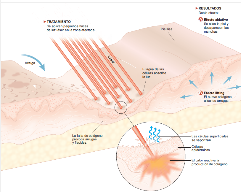 Con la aplicación del láser de CO2 se consigue una repavimentación de la piel para conseguir