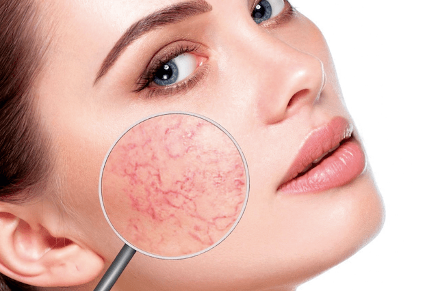 Las telangiectasias lineales azules y las arborizadas se ven con más frecuencia en las piernas, pero pueden observarse también en la cara.