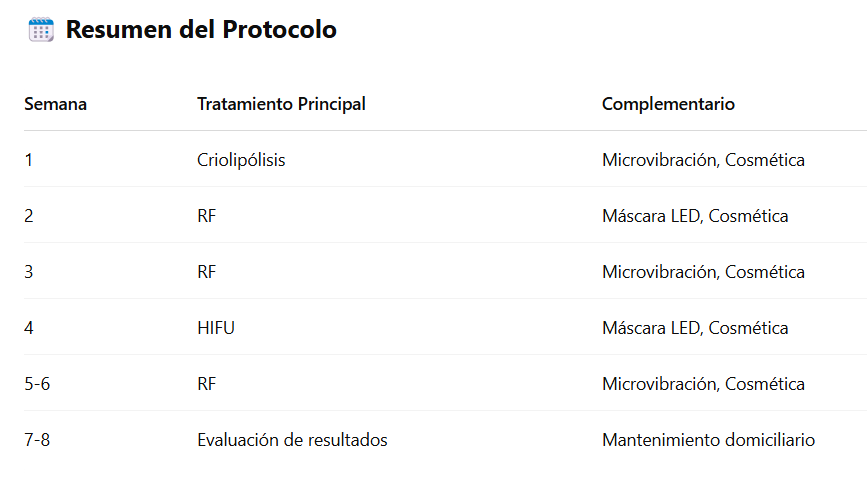 Protocolos combinados: clave del éxito La tendencia actual se orienta a combinar tecnologías según el tipo de tejido, la edad y el grado de flacidez o grasa localizada. Estos tratamientos actúan en distintos planos: graso, dérmico y muscular.