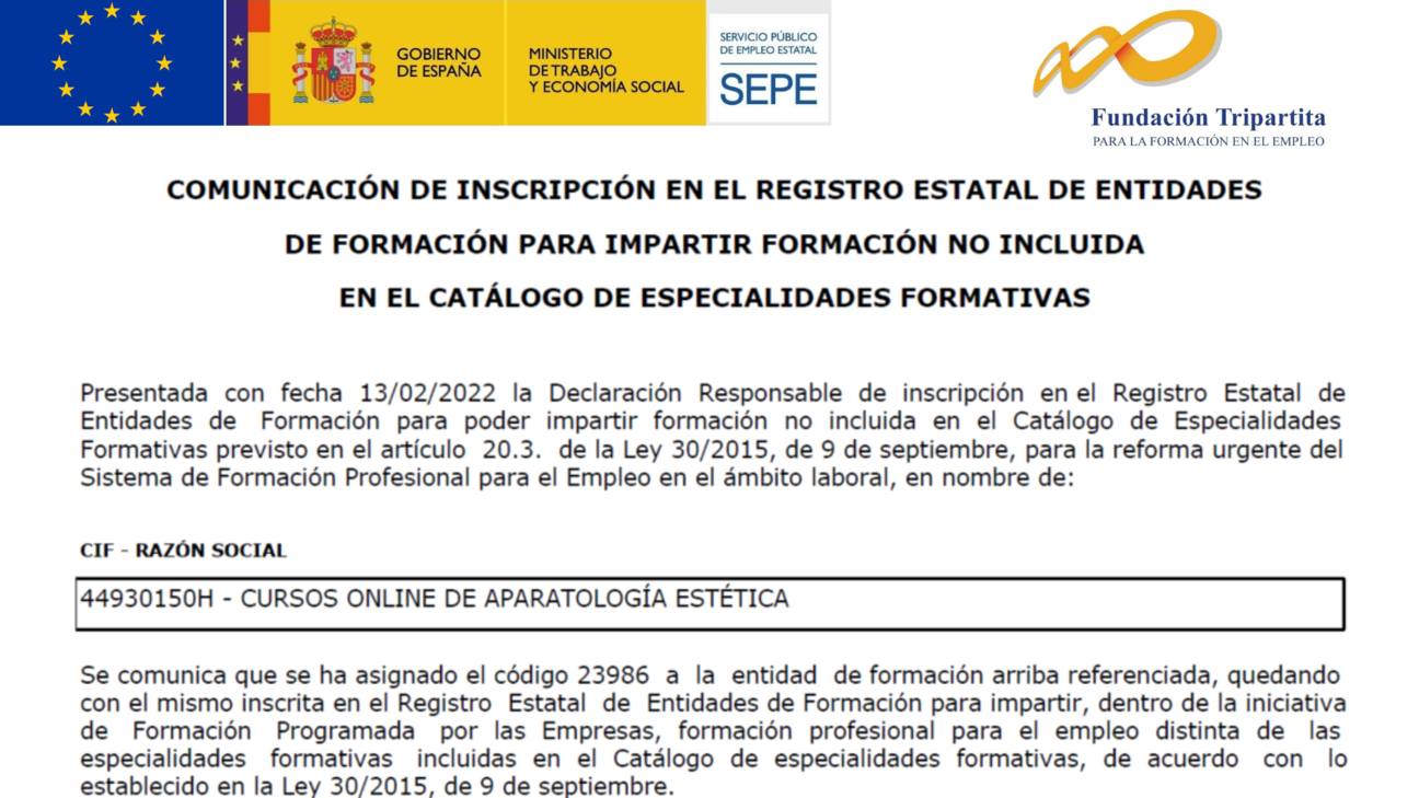 Por ello, cualquier empresa que anuncie “formación homologada en aparatología estética” está utilizando un término incorrecto o meramente publicitario.