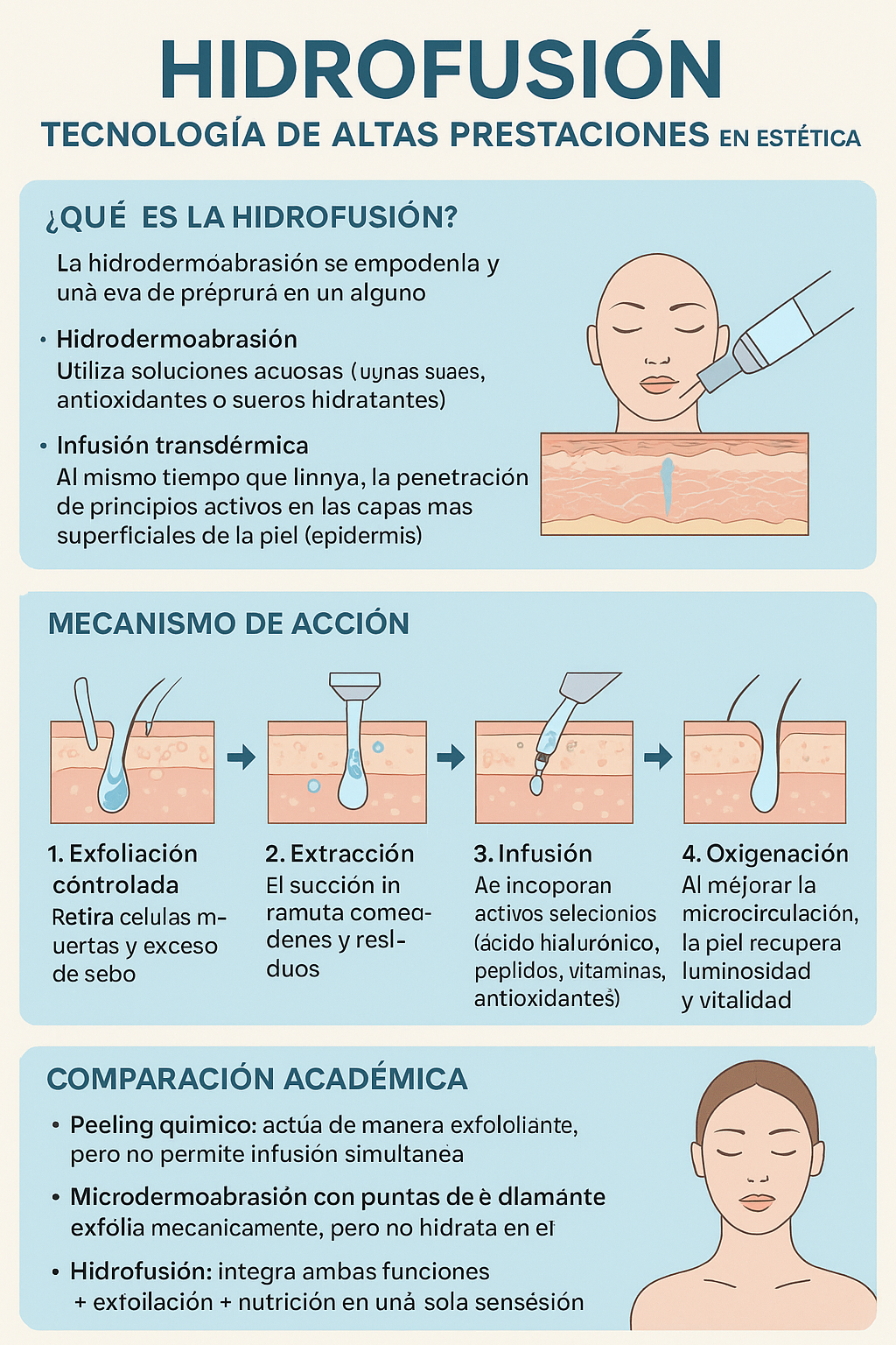 - Hidrofusión: integra ambas funciones → exfoliación + nutrición en una sola sesión, con mayor confort para el paciente.