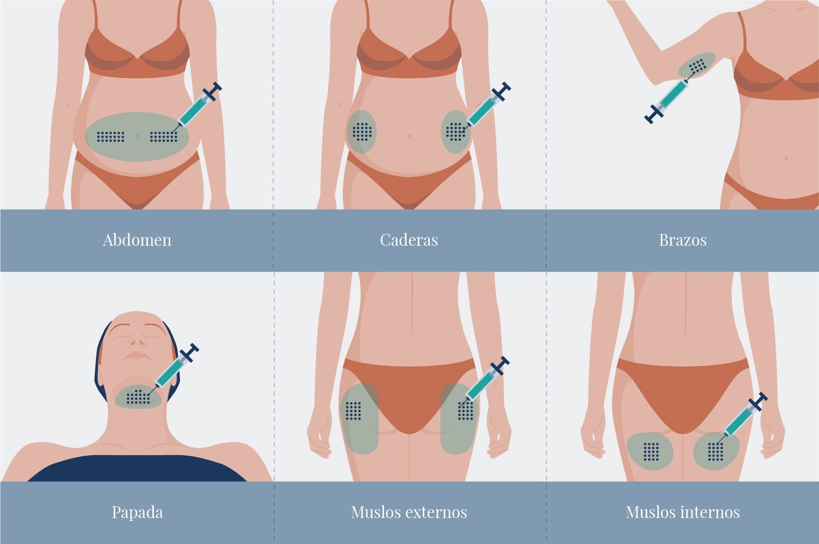 Son varias las partes del cuerpo en las que se puede aplicar. Desde el abdomen, que es la zona más solicitada, hasta piernas y brazos. Así, muslos, cartucheras y glúteos son también tratados, incluso pequeñas zonas del cuello o la papada.