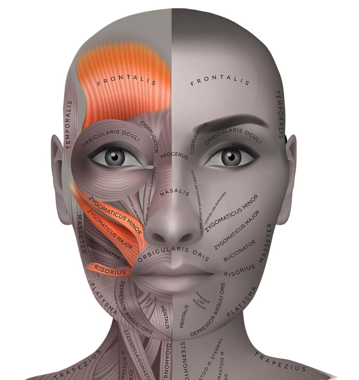 -los músculos cigomáticos mayor y menor (los músculos responsables de la sonrisa)