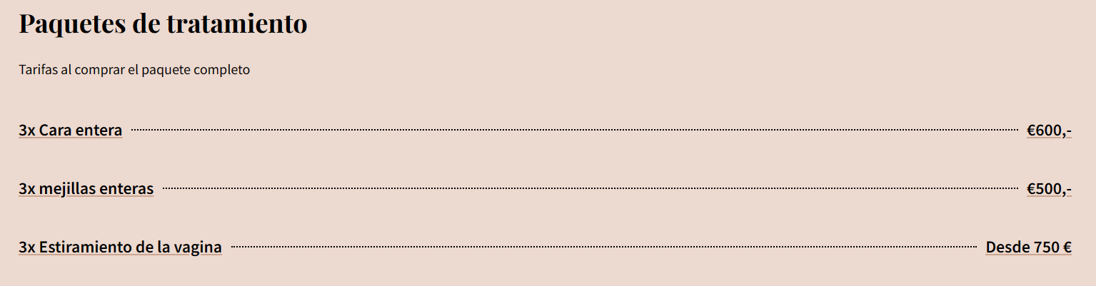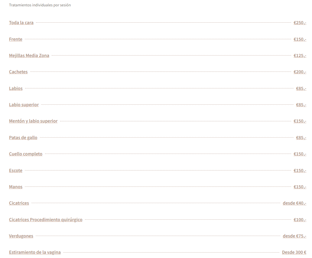 TARIFAS por tratamiento individual y por PACKS - PAQUETES: