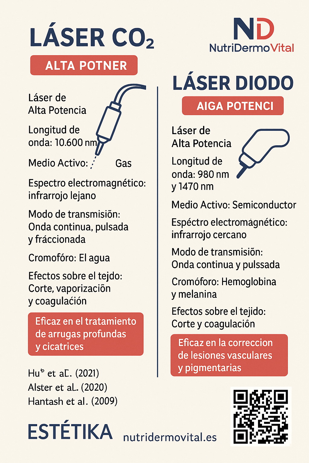 Láser CO₂: Ideal para arrugas profundas, cicatrices y rejuvenecimiento intensivo - envejecimiento avanzado. Alta potencia, gran capacidad de renovación.