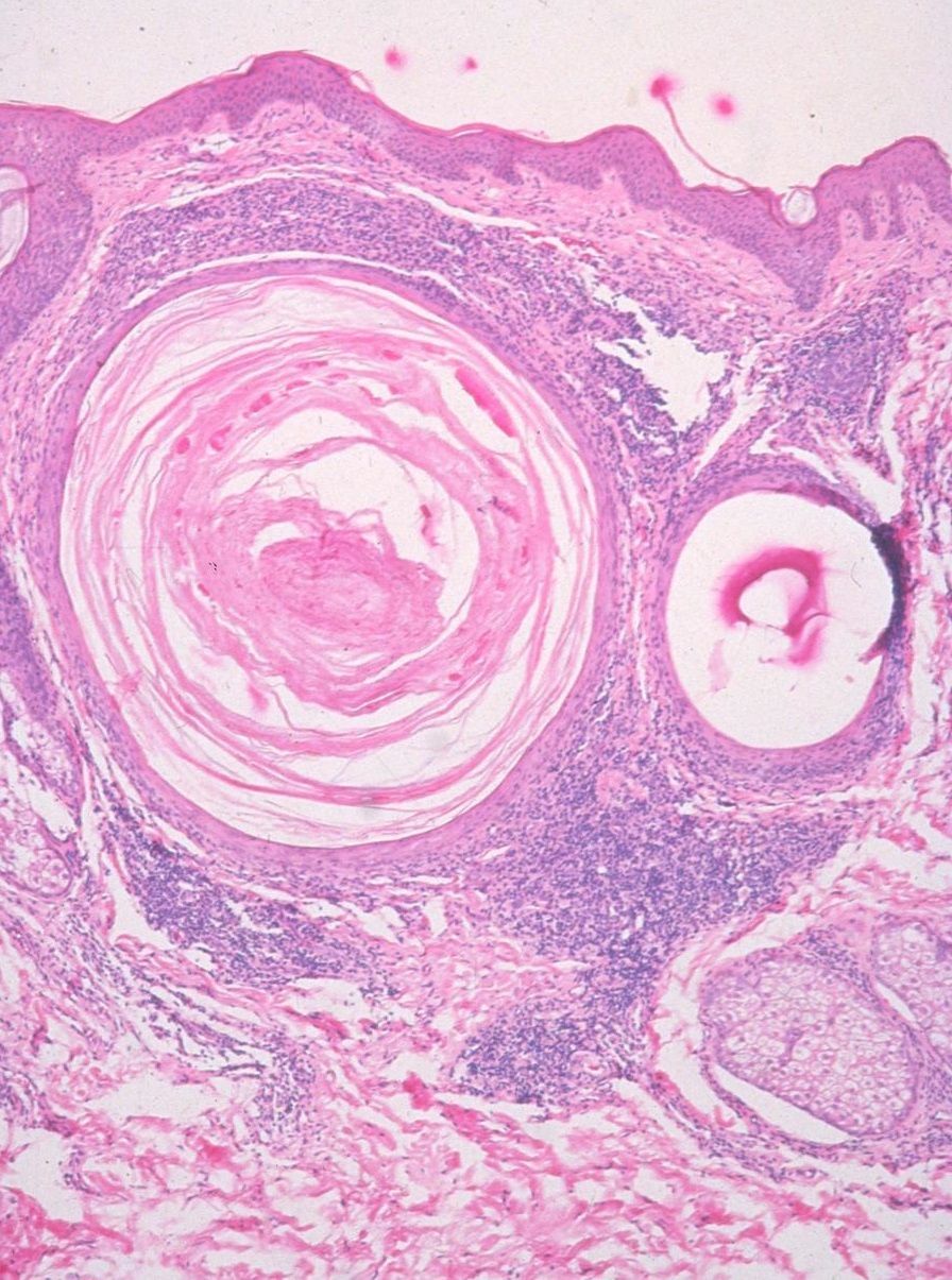 Se tratan de quistes de queratina. La queratina es una proteína que se halla en la capa más superficial de la piel, en el estrato córneo.