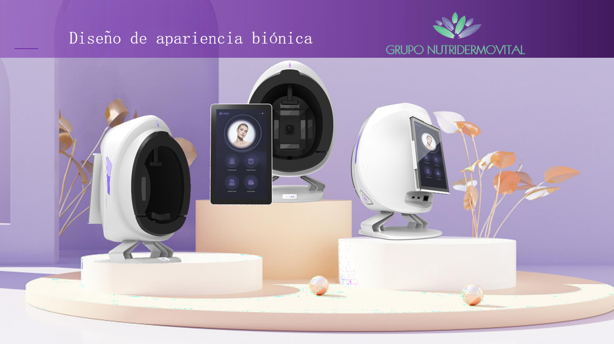 NDV AI Analizador de Piel: es un instrumento capaz de analizar cuantitativamente las características patológicas de la piel, punto de color, poros, uniformidad del tono de la piel, arrugas y detección de manchas de luz UV.
