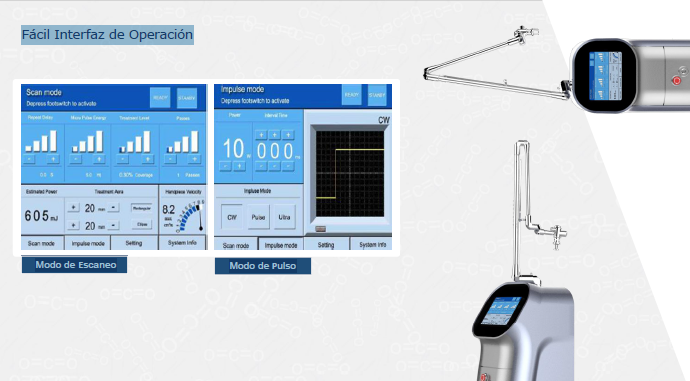 - Ultra pulso: Potencia 1~40W paso ajustable cada 1 Frecuencia modulada de 1000 Hz