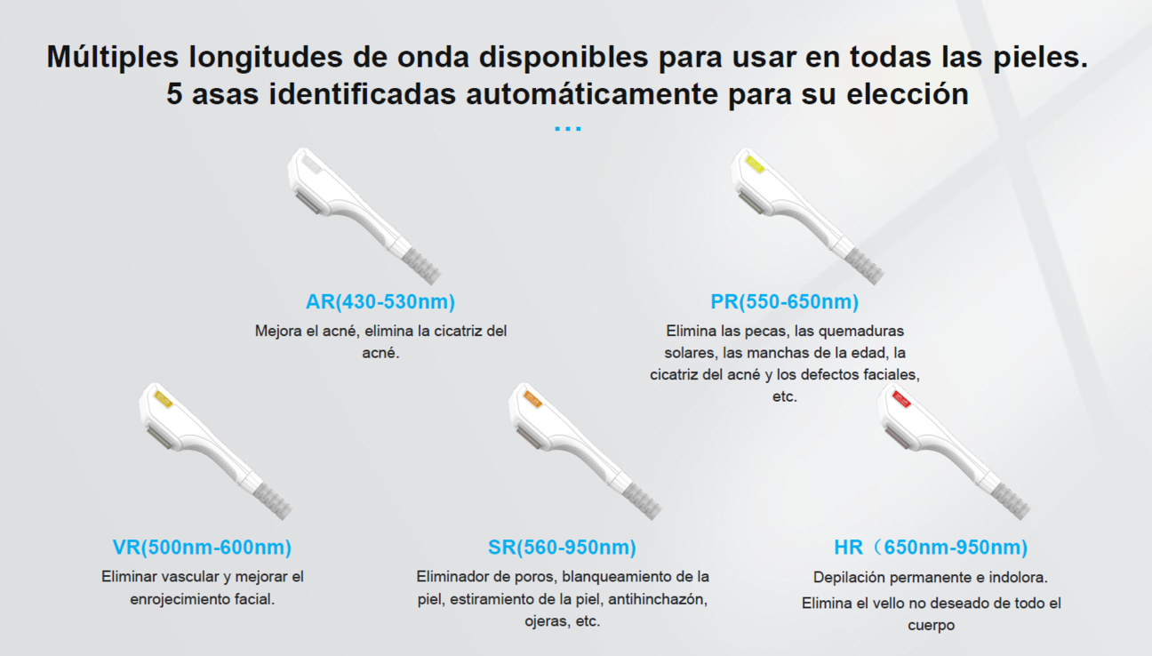 4.Varias longitudes de onda disponibles para su uso en todas las pieles.