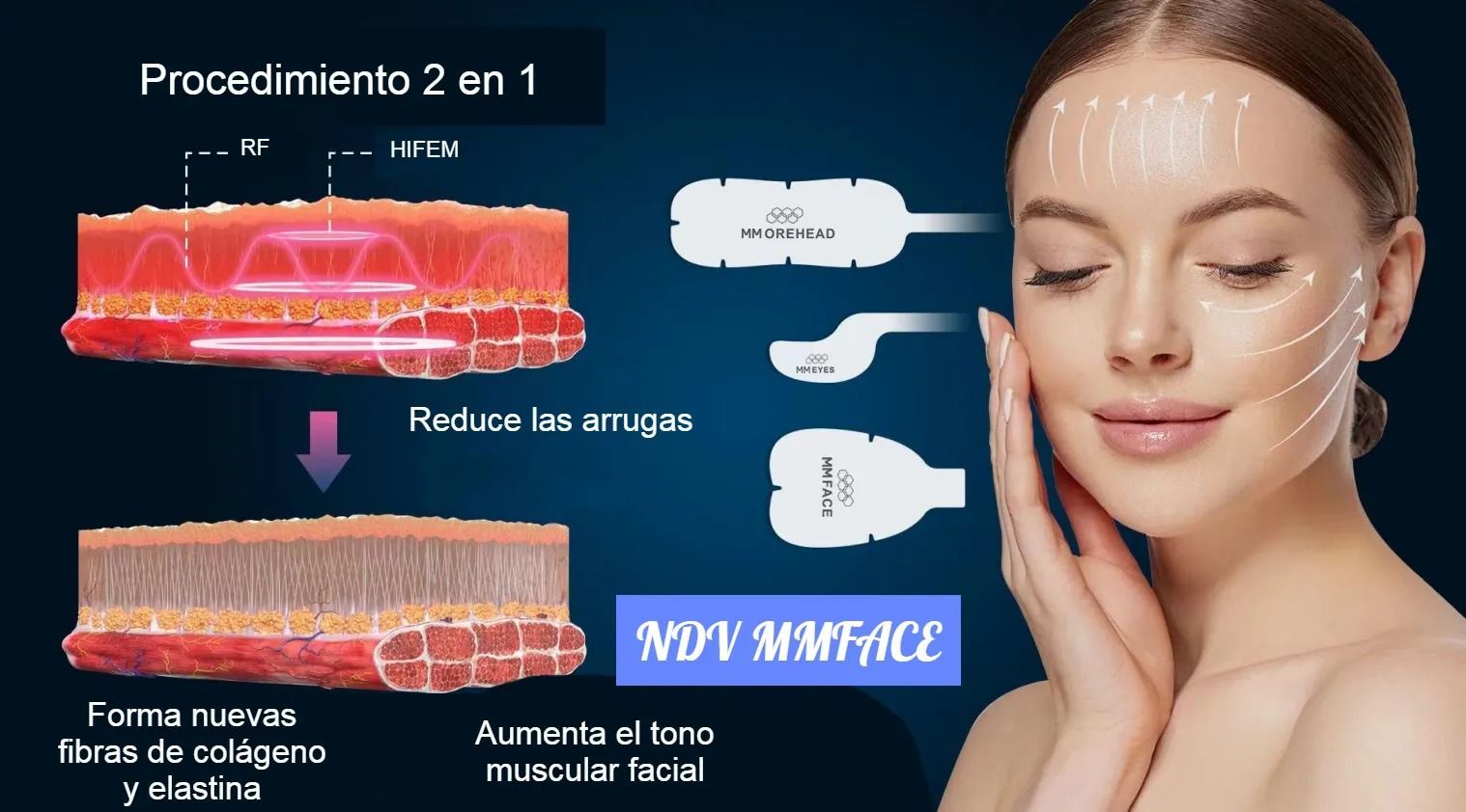 NDV HIFEE + MMFACE son dos sistemas innovadores que, al combinarse en un mismo equipo, ofrecen ventajas extraordinarias en el ámbito de la aplicación facial y corporal.