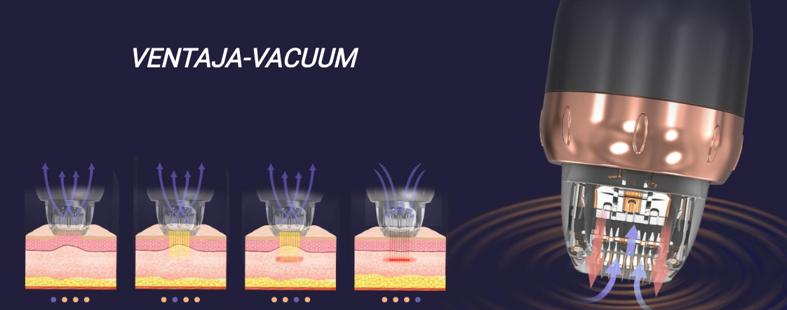 El vacío absorbe la piel y luego la punción libera energía, la energía se entrega de modo uniforme debido a la elasticidad de la piel.