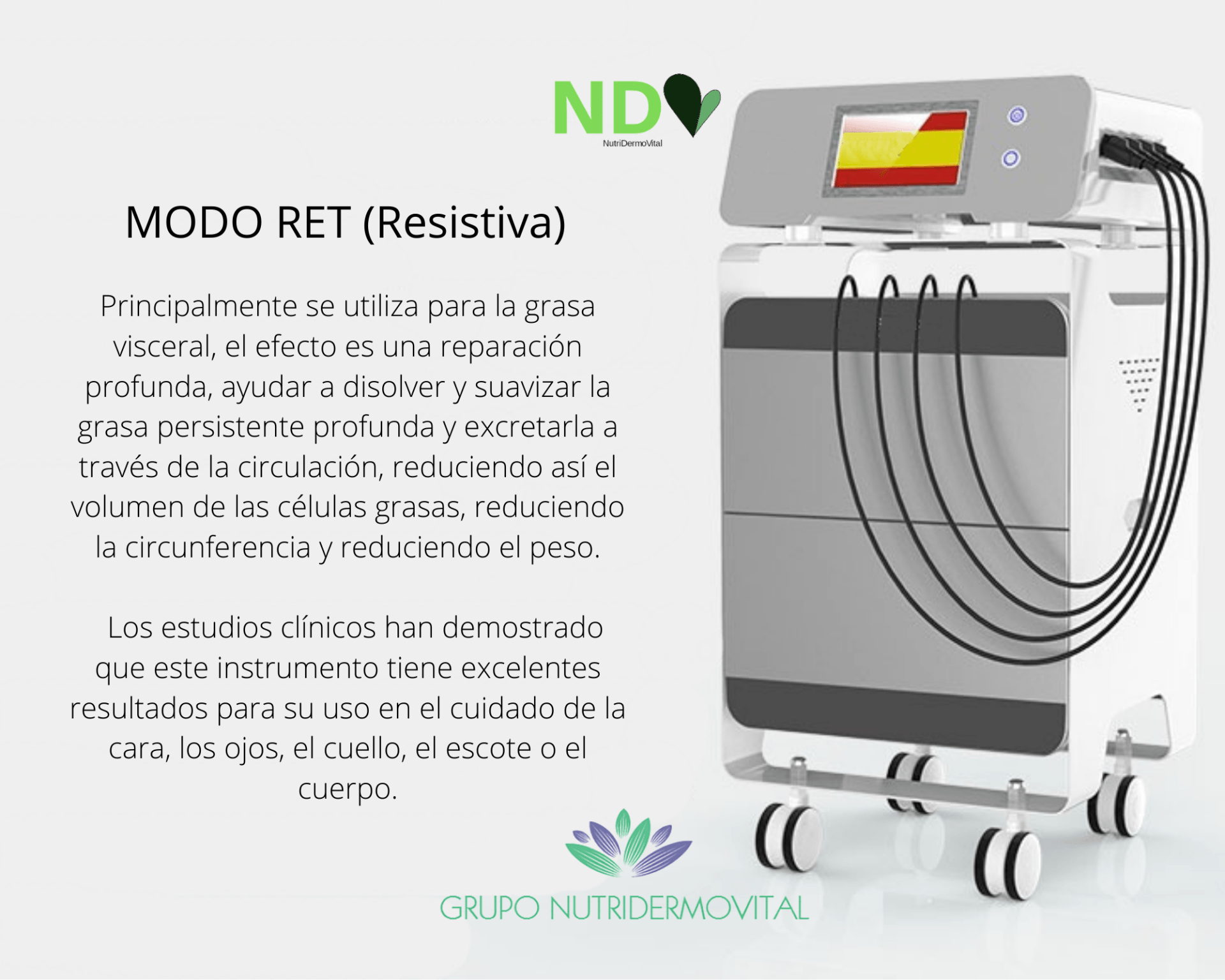 Nuestro equipo produce calentamiento profundo interno de la superficie de la piel y el tejido subcutáneo.