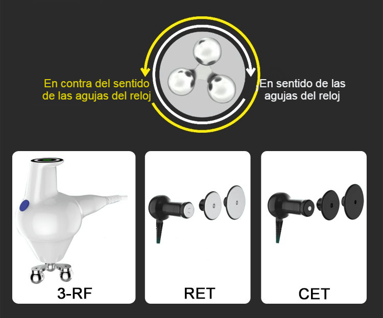 Radiofrecuencia giratoria de 360 grados, el cabezal puede girar hacia delante o hacia atrás.