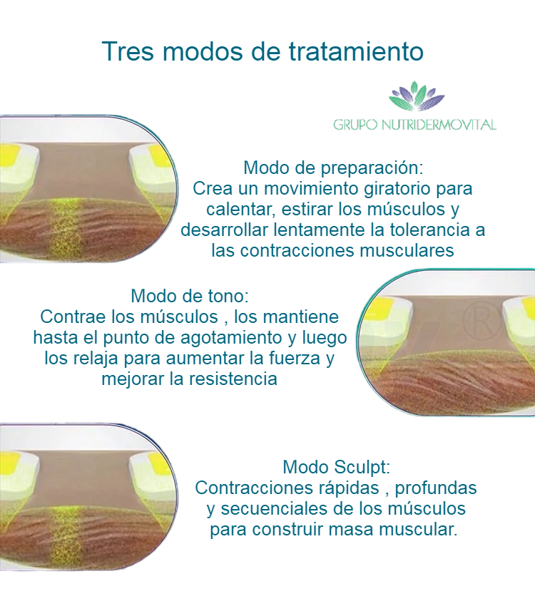 Gracias al diseño de las pieza de mano se obtienen contracciones musculares profundas de gran intensidad con bajos niveles de energía.
