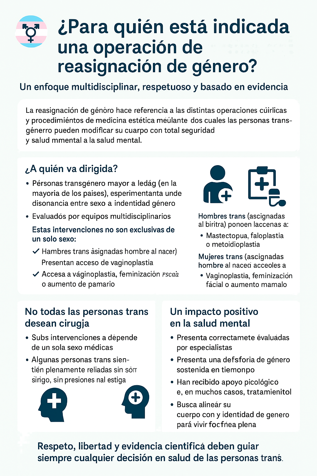 - Pacientes que han iniciado o completado un proceso de hormonación supervisada, aunque no siempre es requisito para todas las cirugías.