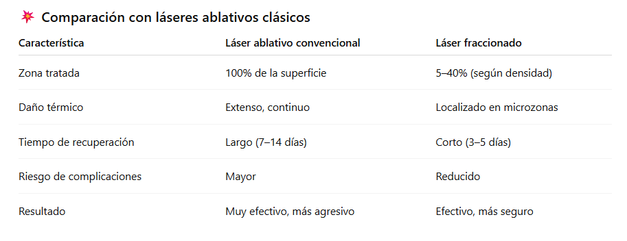 🟦 Láser fraccionado = energía dividida + tejido sano intercalado