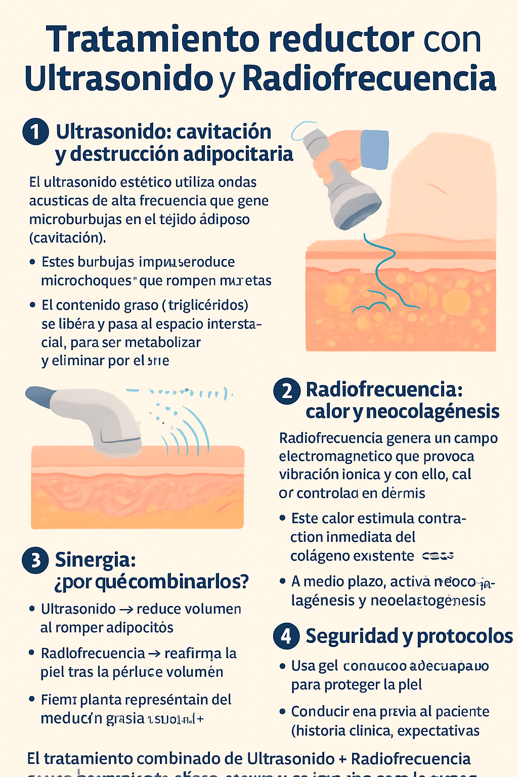 Ultrasonido + Radiofrecuencia es una herramienta eficaz, segura y no invasiva para la remodelación corporal. Su éxito radica en comprender sus bases físicas, aplicarlas con criterio y adaptar los parámetros a cada paciente.